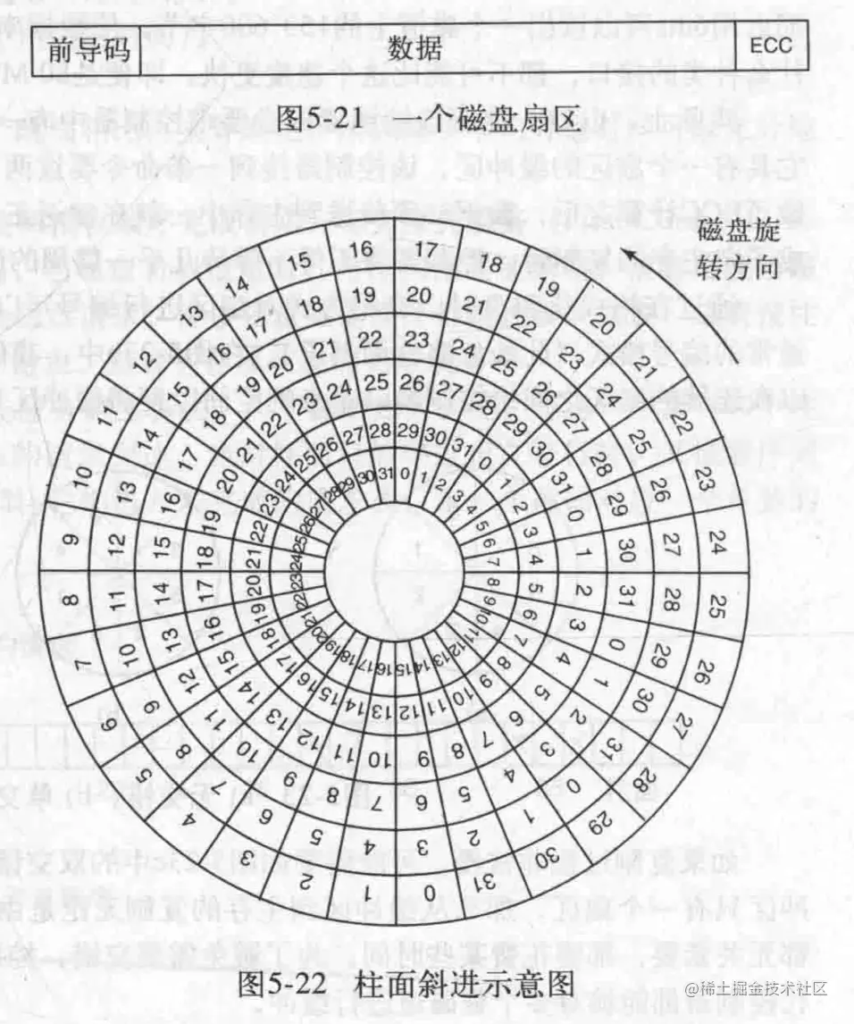 当然了,也存在磁头斜进,不过他的时间远小于一个柱面斜进的时间。