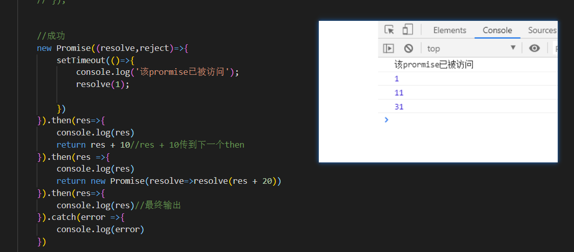 return res + 10//res + 10传到下一个then