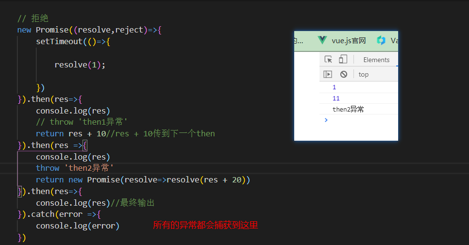 throw 'then2异常'