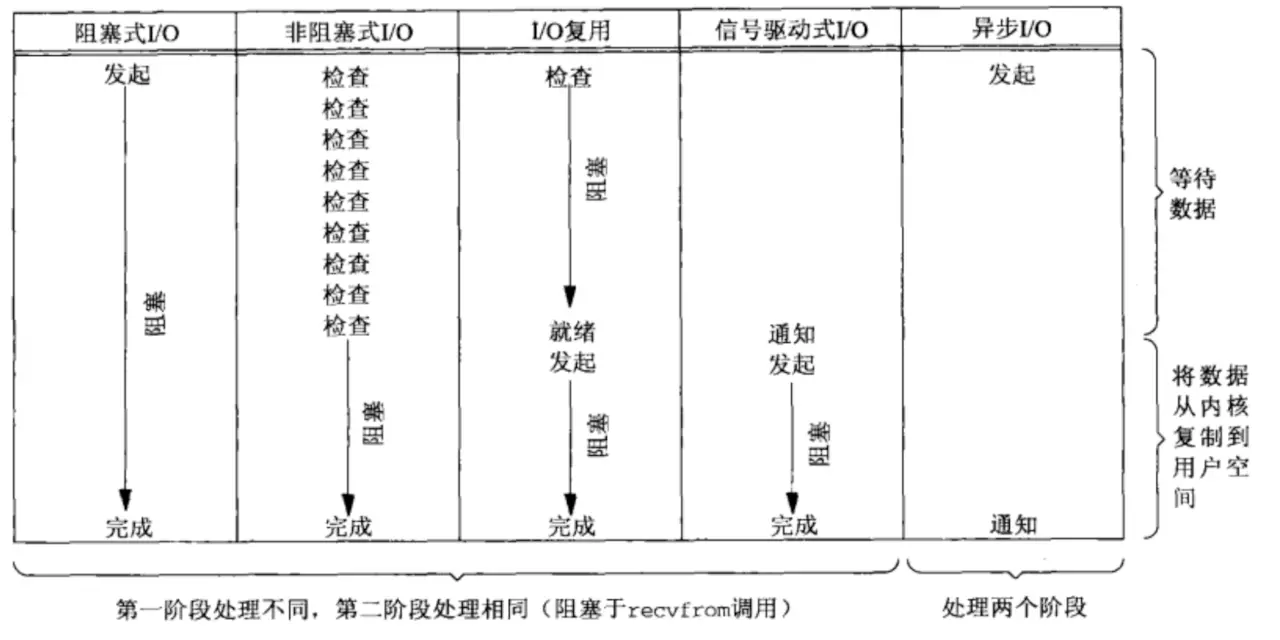 - 前面四种IO都是同步IO:IO操作导致请求进程阻塞,直到IO操作完成