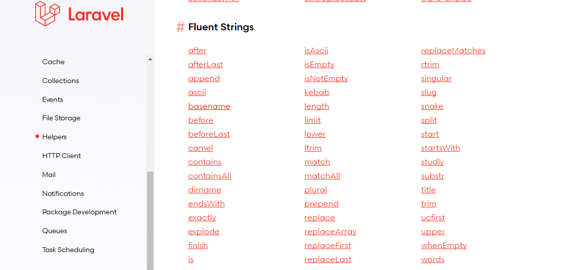 比如 trim() 去除前后空格。 replace() 进行替换,slug() 将字符串变成 slug 的形式
