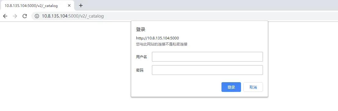 认证方式,需要界面登录 http://IP:5000/v2/_catalog
