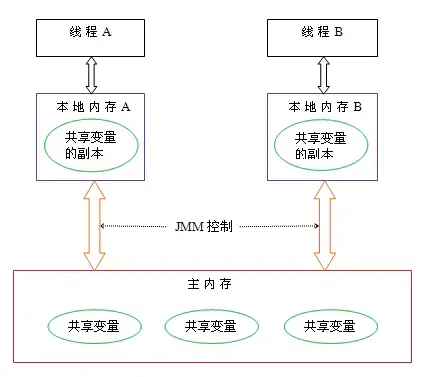 线程之间的共享变量存储在主内存(main memory)中,每个线程都有一个私有的本地内存(local memory),本地内存中存储了该线程以读/写共享变量的副本。本地内存是JMM的一个抽象概念,并不真实存在。它涵盖了缓存,写缓冲区,寄存器以及其他的硬件和编译器优化。