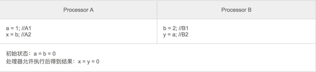 上面提到在CPU和主存之间增加缓存,在多线程场景下会存在缓存一致性问题。除了这种情况,还有一种硬件问题也比较重要。那就是为了使处理器内部的运算单元能够尽量的被充分利用,处理器可能会对输入代码进行乱序执行处理。这就是处理器优化。