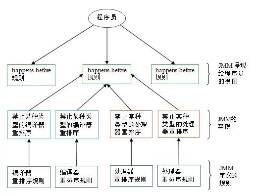 JSR-133 内存模型使用happens-before的概念来阐述操作之间的内存可见性。在 JMM 中,如果一个操作执行的结果需要对另一个操作可见,那么这两个操作之间必须要存在 happens-before 关系。这里提到的两个操作既可以是在一个线程之内,也可以是在不同线程之间。
