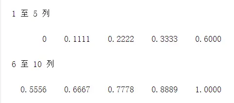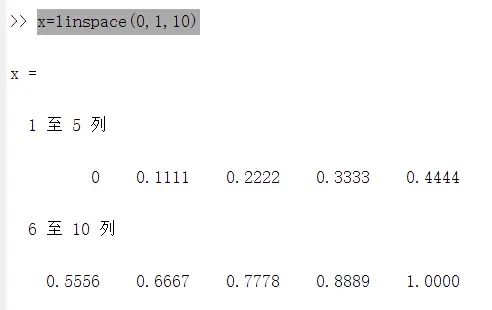 x=linspace(0,1,10) 等距间隔 区间是0-1,十个点