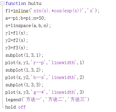 f1=inline('sin(x).*cos(exp(x))','x');//与下面定义方法皆可