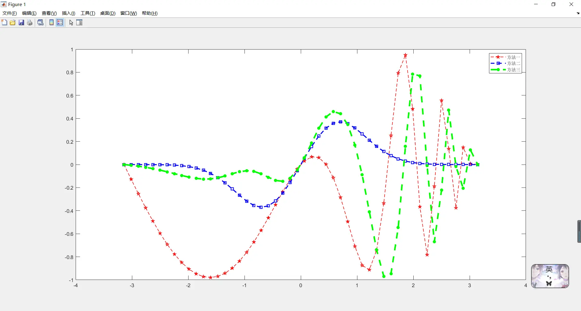 例如画f图像 t=linspace(0,pi,50) 声明t为0-pi的50个点
