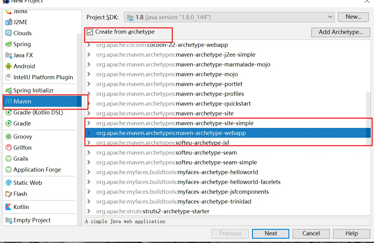 选择maven,勾选Create from archetype,选择maven-archetype-web-app,选好后就点击“next”吧。如下图所示:1.4 给项目起名
