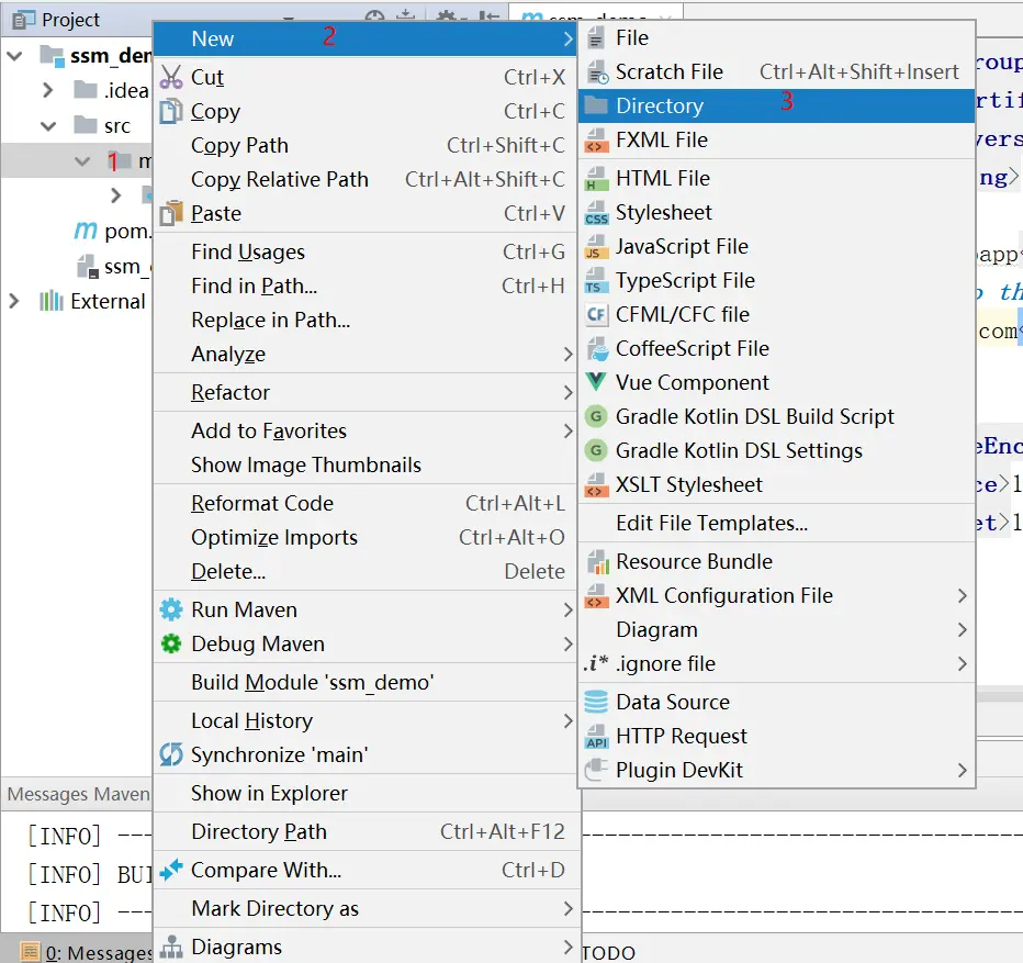 鼠标右键选择main目录 -> New -> Directory,给新建目录起名为“java”