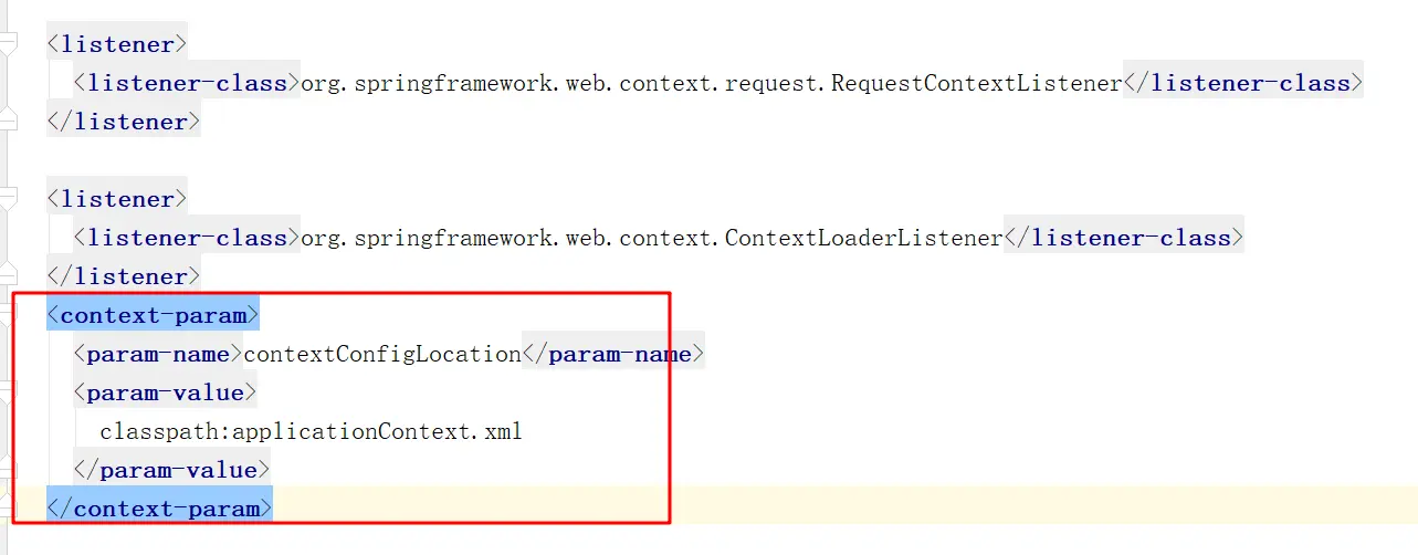 在web.xml中配置一个监听器,用于tomcat容器启动后加载Spring的配置文件,这里我给Spring的配置文件起名为:applicationContext.xml,在resources目录下。