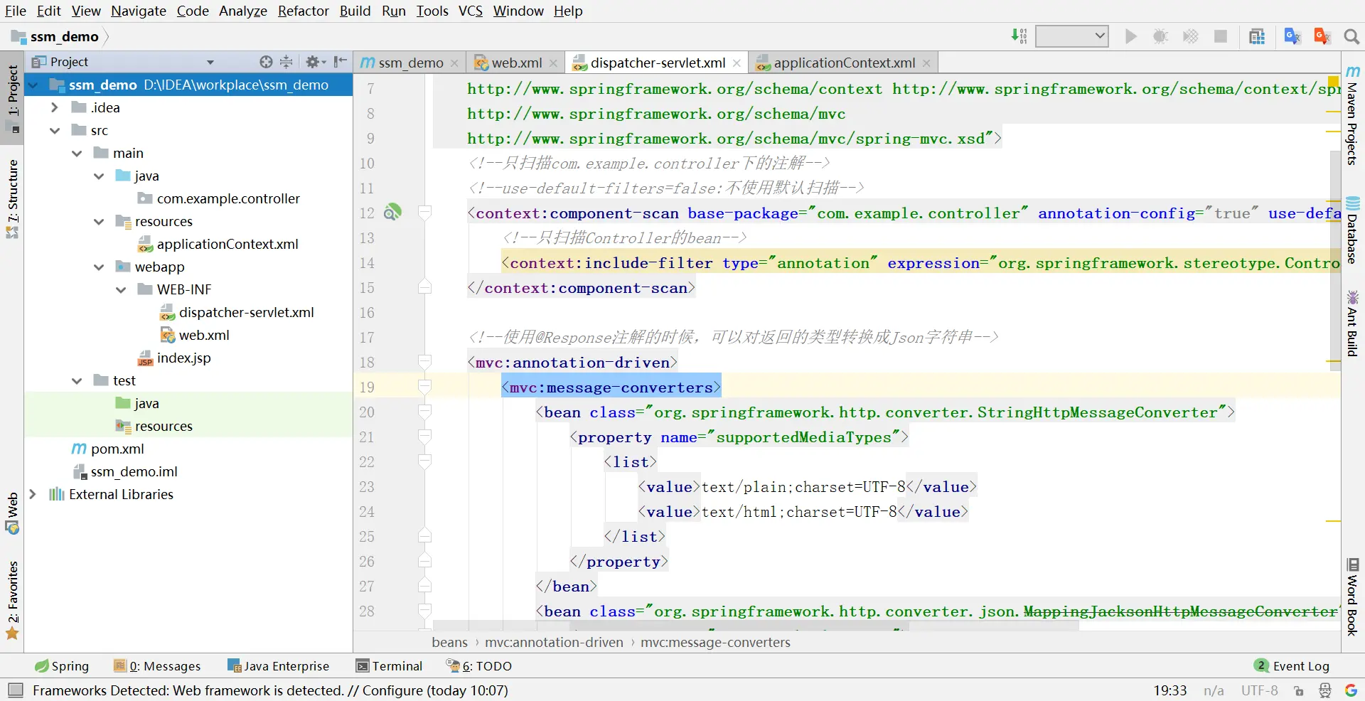 5.3 dispatcher-servlet.xml 完整配置,配置中也有具体解释。