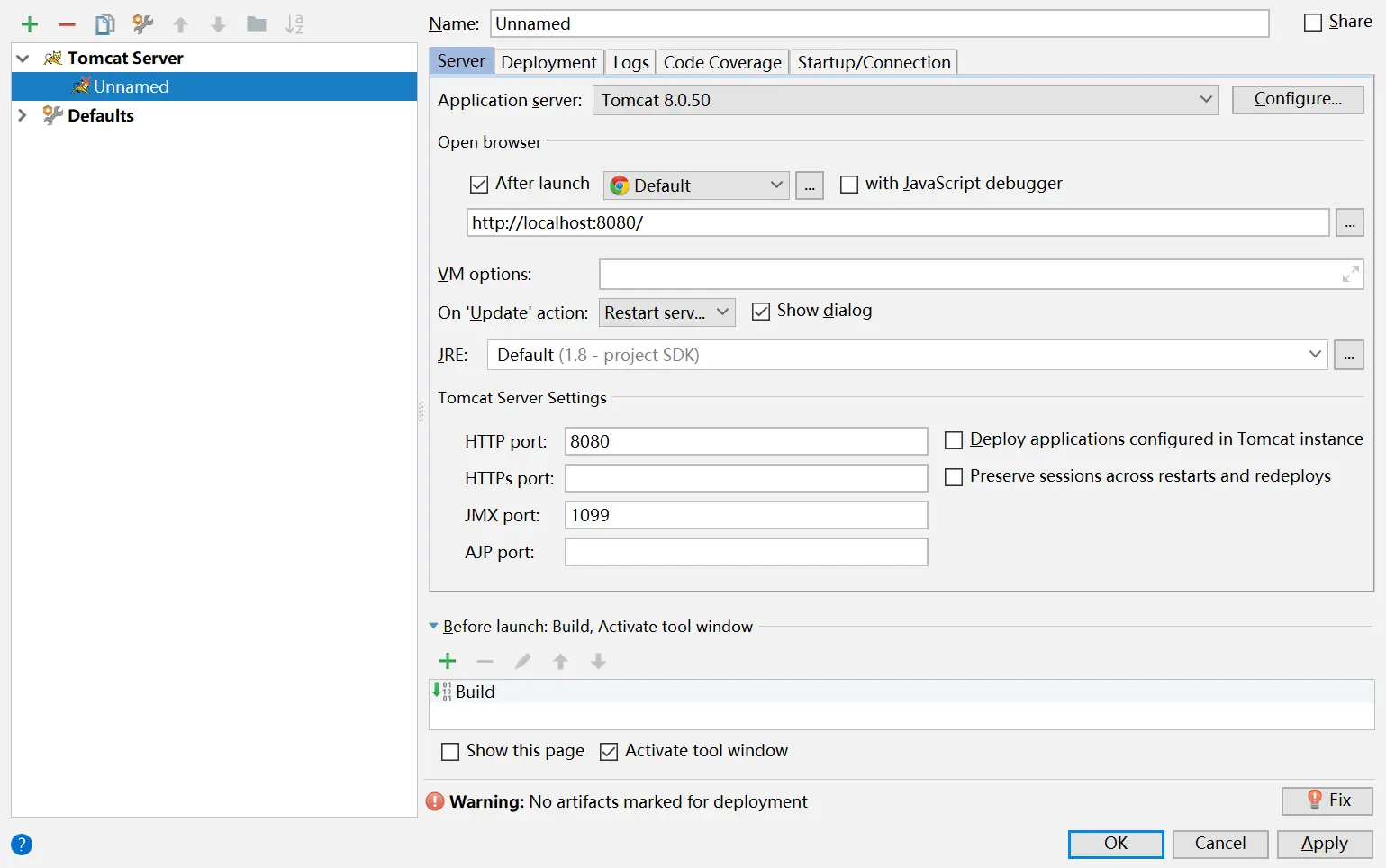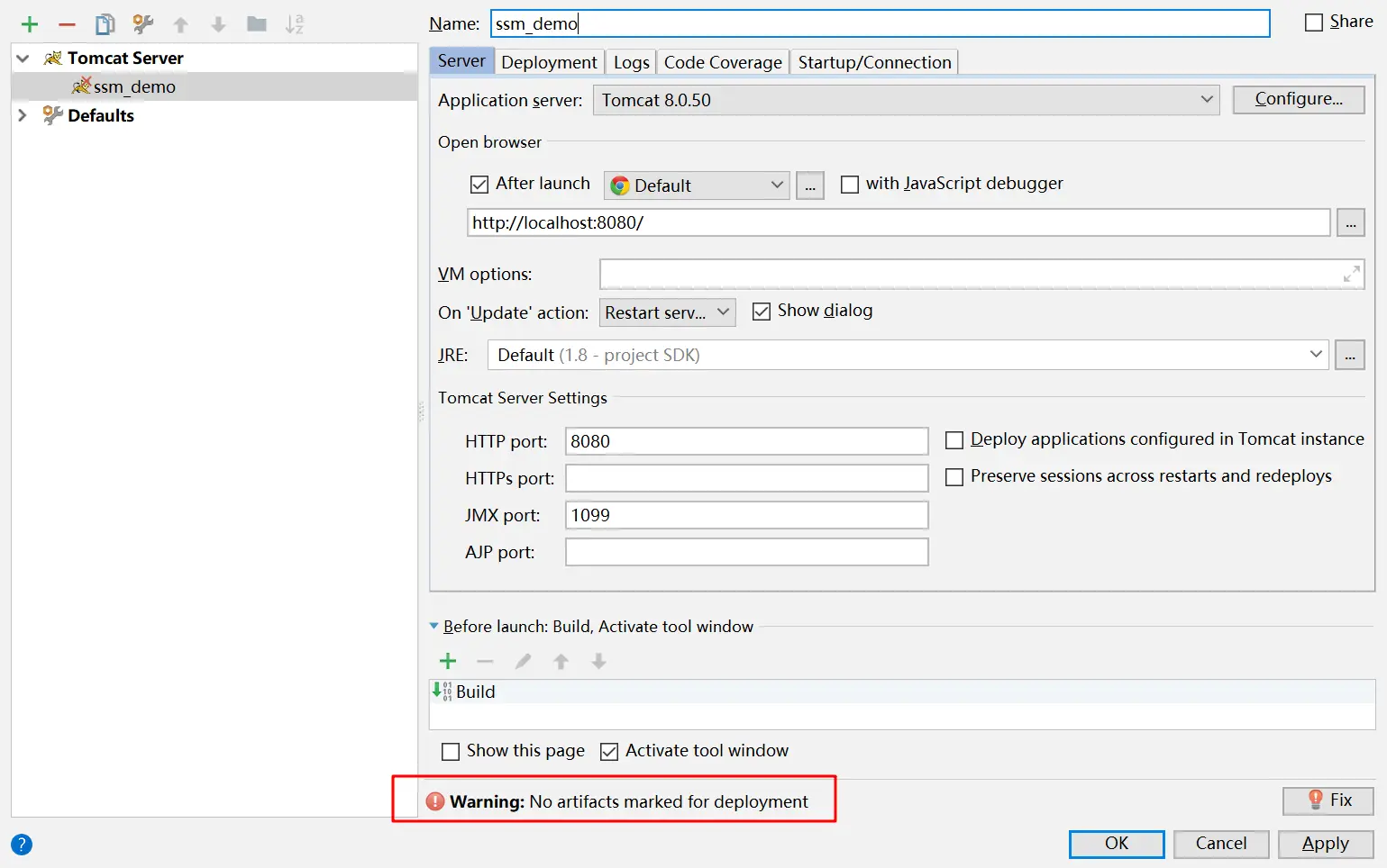 5.6.1.6 该配置页效果,细心的小伙伴看到了下面有一个警告,缺少“artifact”,接下来就要配置这个了。