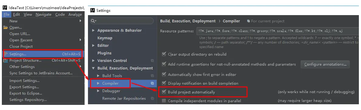 出现这种情况,并不是热部署配置问题,其根本原因是因为Intellij IEDA默认情况下不会自动编译,需要对IDEA进行自动编译的设置,如下: