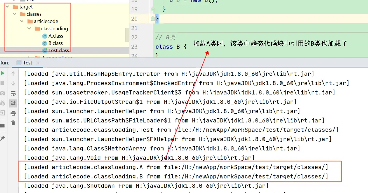 当初始化一个类的时候会初始化该类的静态代码块,如果这其中有引用到其它类,那么被引用的类也会进行加载。