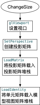 当显示窗口发生改变时,需要重新基于新的视口创建新的投影矩阵。使用SetPerspective方法设置新的矩阵,实际上就是定义一个平截头体。viewFrustum是定义一个GLFrustum对象,也就是一个透视投影对象。