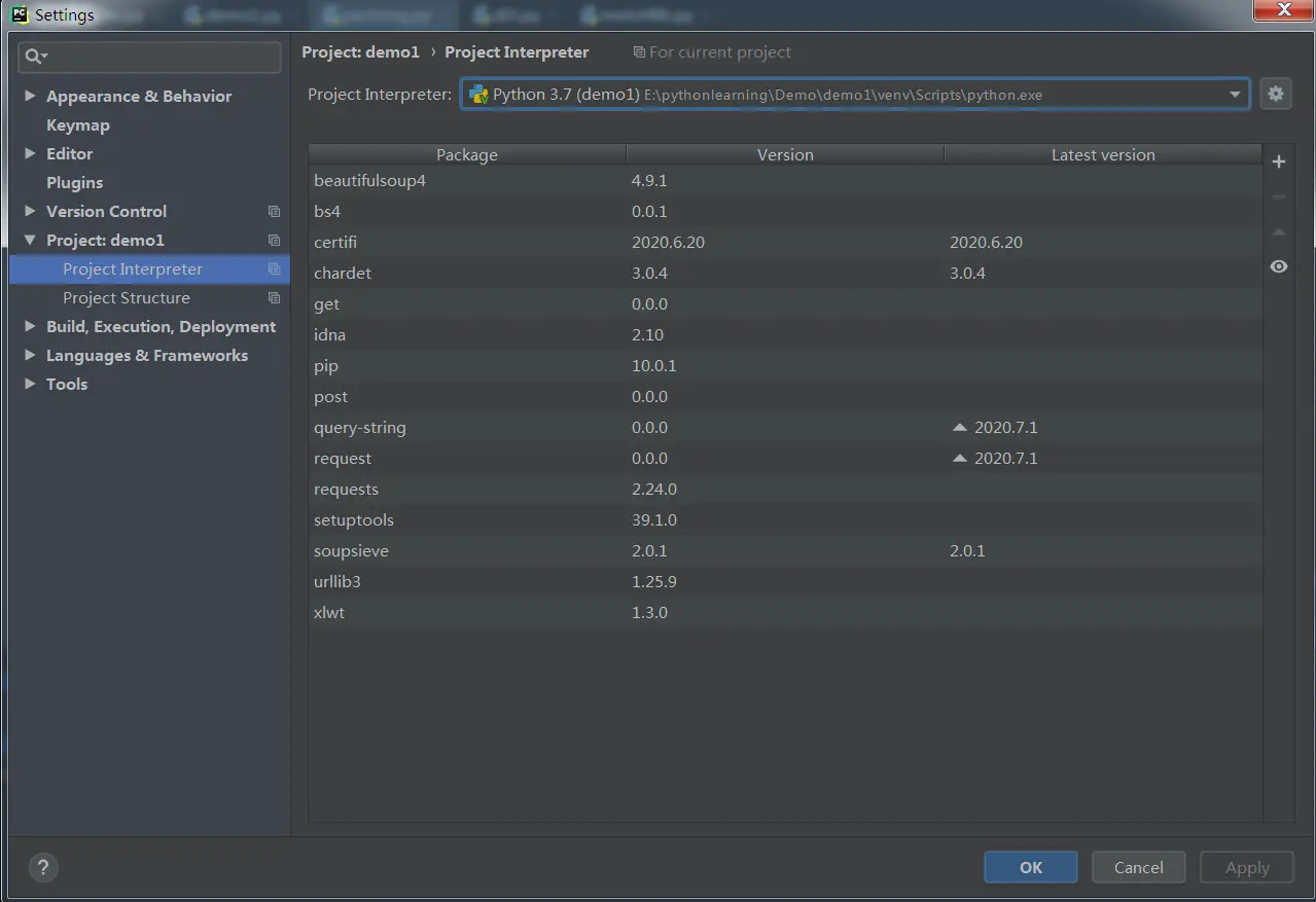 6.重复上面的步骤,下载bs4、xlwt依赖包。