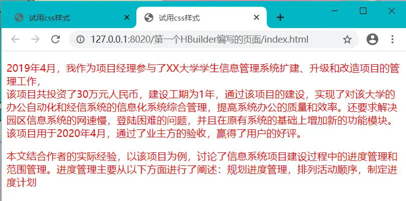 在将示例的css样式进行实际尝试的时候,我发现无论怎么刷新,我的谷歌浏览器都只会显示html默认的样式,无法显示我修改过的css样式。我在多次确认过编写的语言没有出错后,我换了edge浏览器运行该页面,显示成功了。