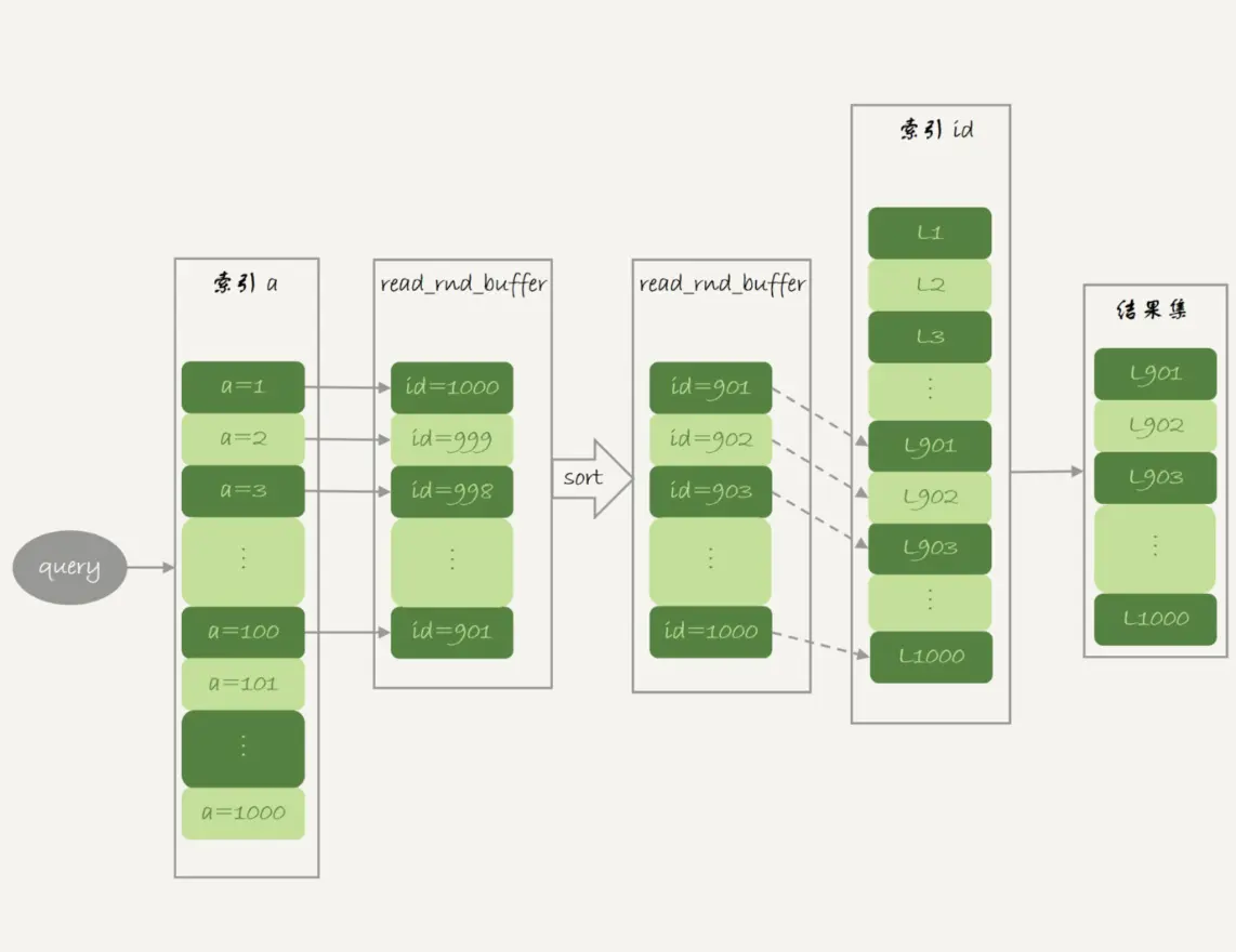 - 将read_rnd_buffer按照id递增排序;