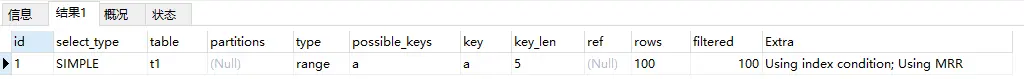 explain结果:
