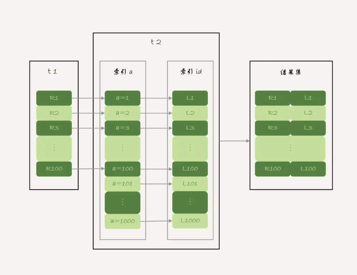 理解了MMR,我们看一下mysql5.6引入的Batched Key Access(BKA)算法,其实就是对NLJ的优化。 先看下上一篇NLJ的流程: