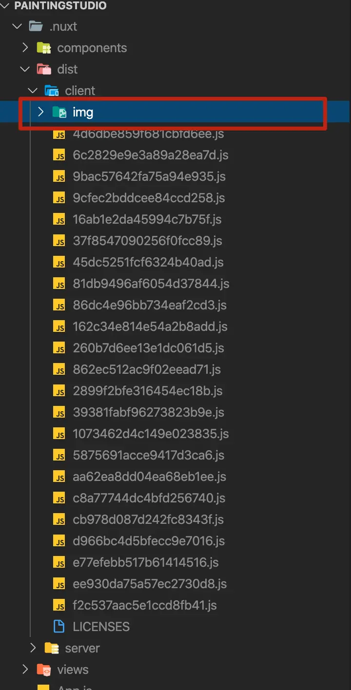 因此我们只要逐步遍历我们的需要上传的文件夹就好了。 直接给用例,看似很长,其实没多少逻辑,就是遍历需要上传的文件夹。 以一个 Nuxt 项目为例,需要上传的是客户端的静态资源,本地路径为.nuxt/dist/client。 文件结构如下: