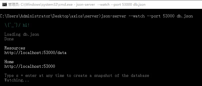 json-server --watch --port 53000 db.json这个时候会开启服务