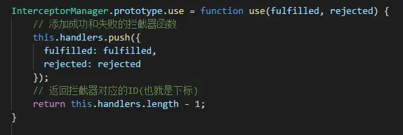 当使用 use 的时候将两个回调存放到 this.handlers 数组里面