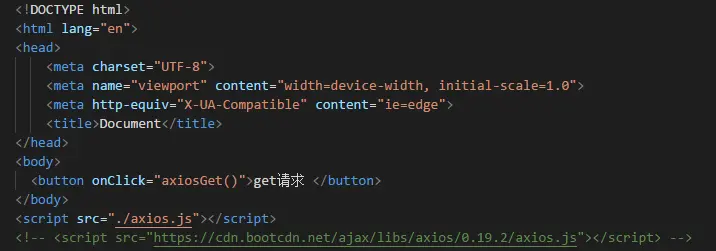 这个时候新建 html 文件,并使用 axios cdn 进行引用