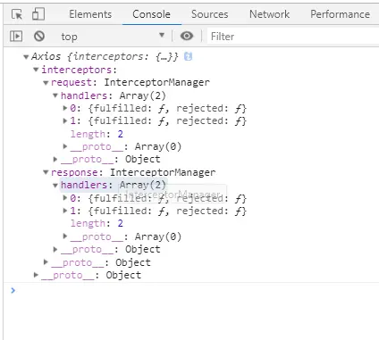 我们可以看到,在使用拦截之后,分别在 request 和 response 的 handlers 数组里面存有我们的