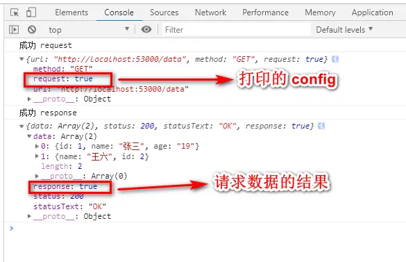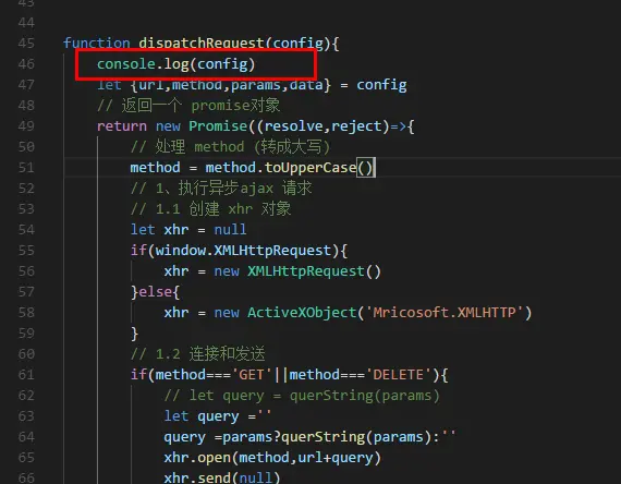 为了查看结果,在 dispatchRequest 函数中打印 config