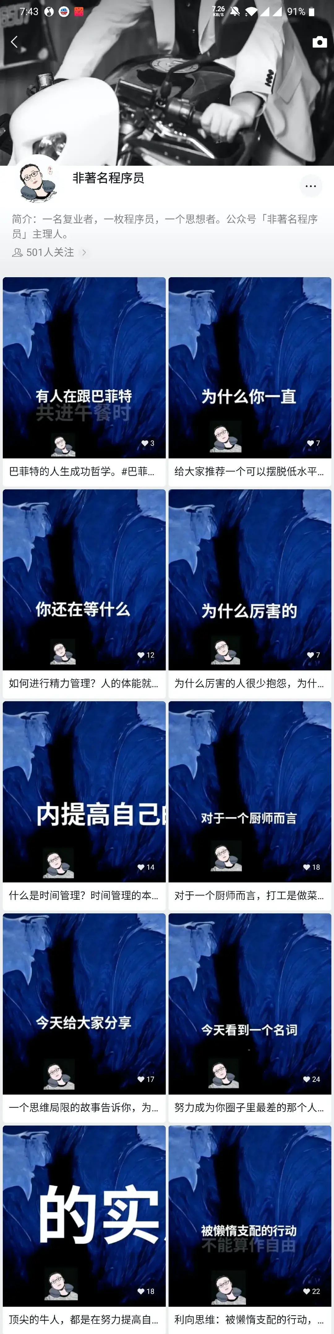 一起加入我吧。大家可以关注我的微信视频号:非著名程序员,搜索关注,每天分享一条有价值的视频,让你的生活「有点意思」。