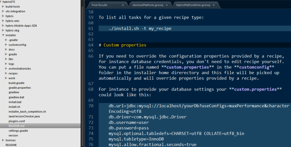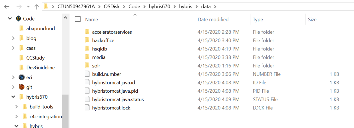 config文件夹:It has all config files. Instead modifying files in platform folder, modify them in the config folder (localextensions.xml / local.properties). If you are sure what you doing, then you can also do in platform folder.