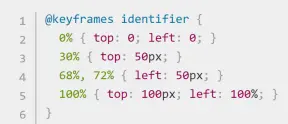 animation:这个属性可以实现多个动画之间的过渡,但是在使用的过程中需要声明关键帧,声明关键帧的格式如下图所示: