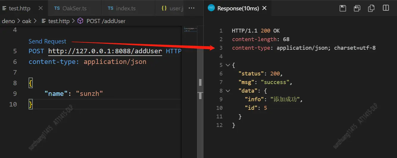 复制代码当第一次运行时会发现,deno安装了很多依赖包,这也是区别余Node的一个地方。