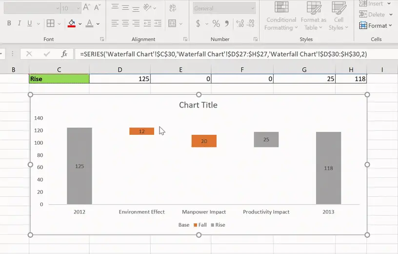 现在,我们已经使用上述步骤实现了瀑布图的骨架图。我们只需要做一些额外的动作。