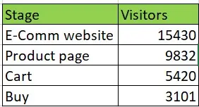 为了了解流量从一个阶段到另一个阶段的下降,我们将通过以下视频或步骤绘制漏斗图: