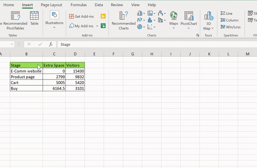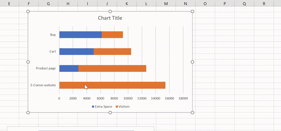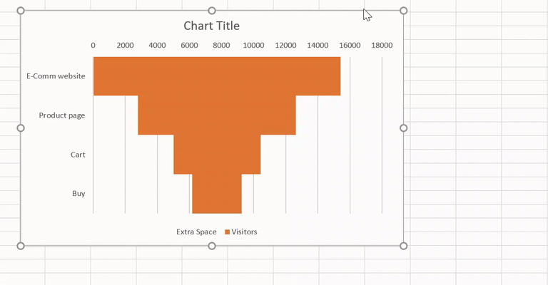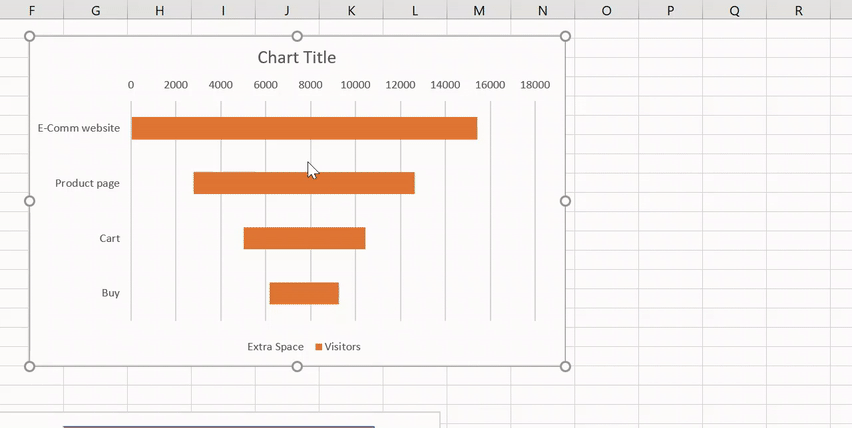 漏斗图基本上是一个条形图或一个添加了格式的堆积图。因此,让我们在Excel中添加条形图: