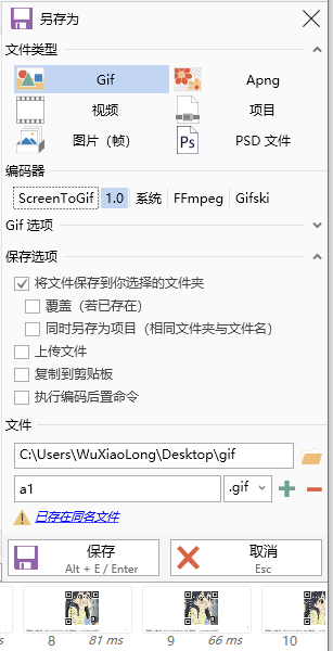 点击文件菜单里的另存为,就可以保存成gif格式了的动态图片了。
