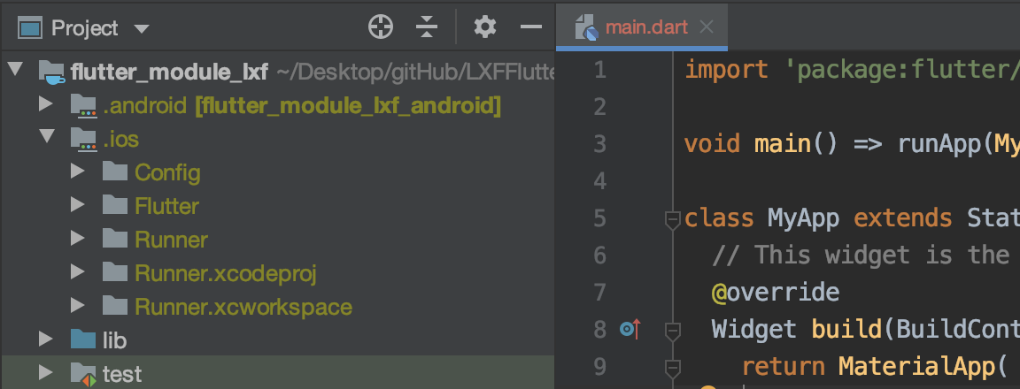 创建出来的 Flutter 模块依然是可以像之前创建的Flutter项目 一样打开和运行的。
