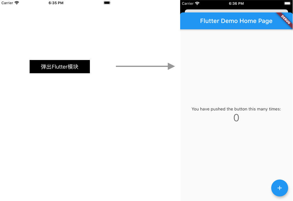 btn.setTitle("弹出Flutter模块", for: .normal)
