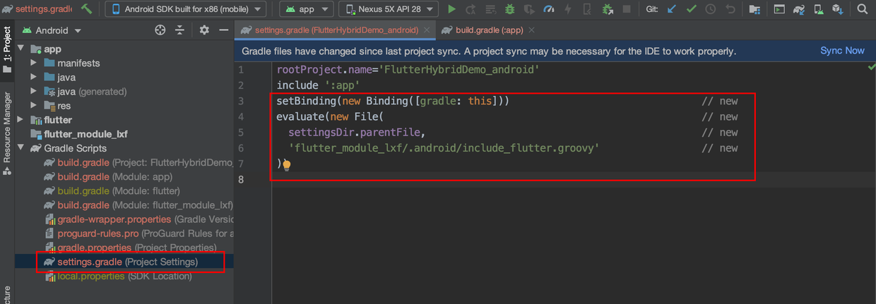 修改安卓项目 根目录下的 settings.gradle 文件