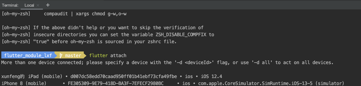 如果当前有多个设备,会提示我们需要指定 attach 哪个设备