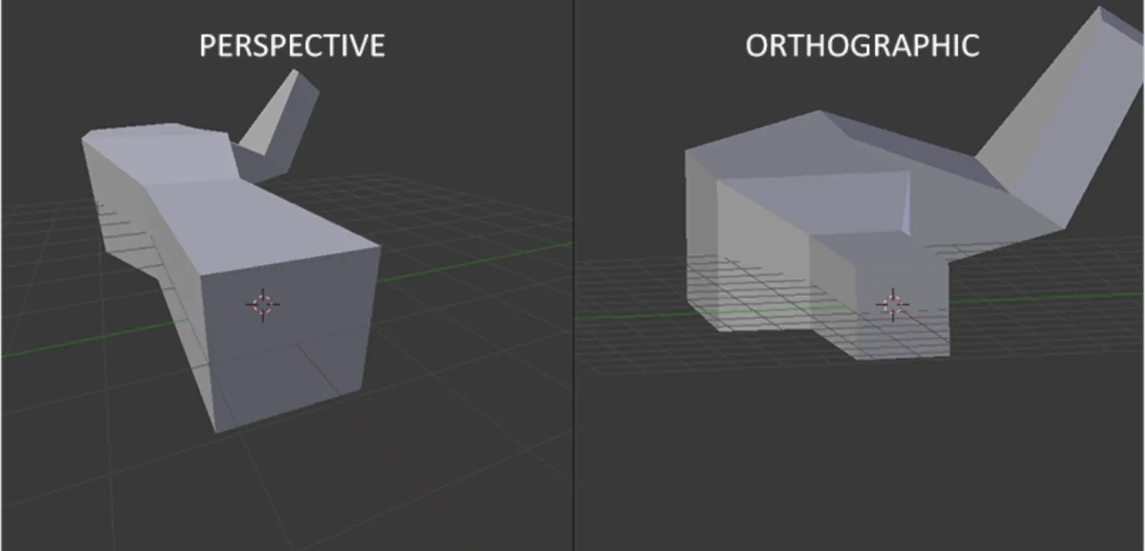 透视和正交矩阵投影的3D效果图如下:
