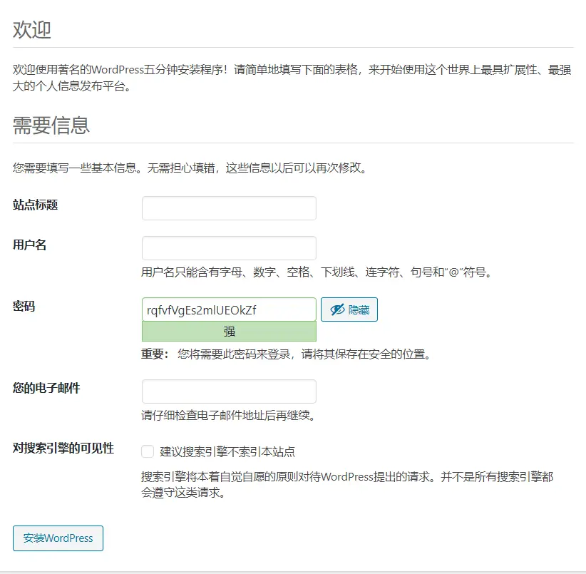- 条件4:wordpress中文安装包。你可以去官网下载,也可以用我下载好了的。wordpress中文安装包(下载验证码:123456)