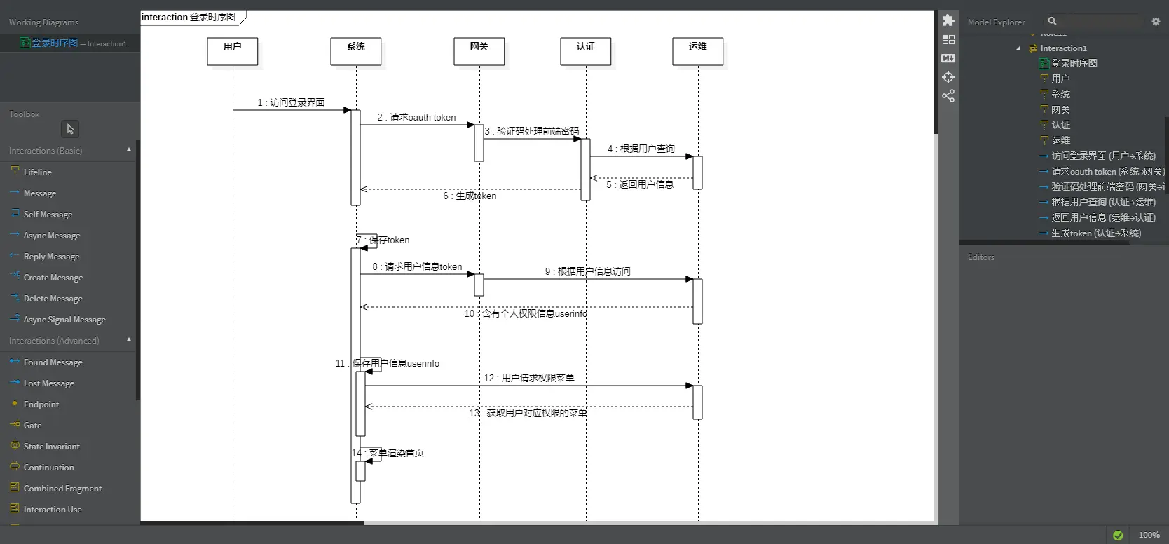 双击,左侧 Interactions(Basic)中的Lifeline可以锁定,连续绘制。