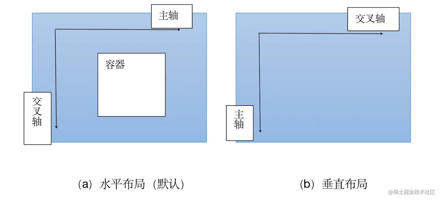 column:主轴在垂直方向上从上而下,项目按照主轴方向从上往下排列 -