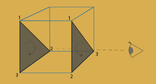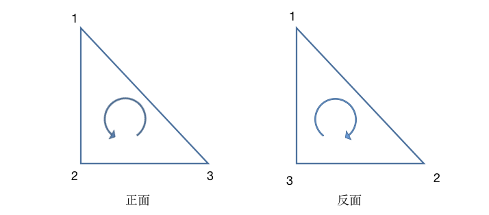 正面和背面是由三角形的顶点定义顺序和观察者所在方向共同决定的