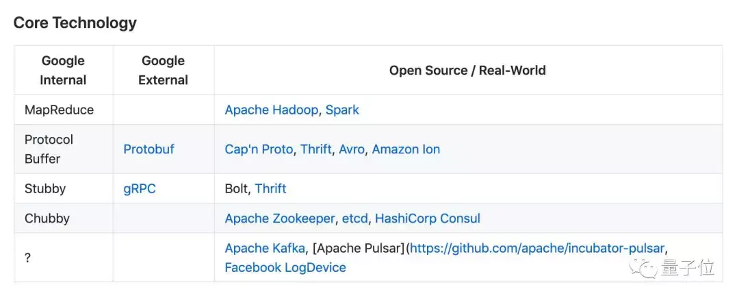 清单其中大部分替代软件是 Google 开源的项目,或者是受谷歌论文的启发,由开源软件基金会自己做的第三方实现。即使你从来没进过 Google 工作,也在享受着 Google 工程师们带来的福利。不禁让人感叹 “谷歌拯救世界”。