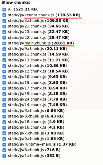 代码拆分打包后会有多个 chunk ,加载过一次就会被浏览器缓存,那么按需加载的时候被加载的资源就会变得越来越少。
